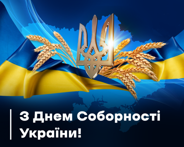 Щиро вітаємо Вас із Днем Соборності України — символом єдності нашої держави, її територіальної цілісності та незламної волі українського народу.
